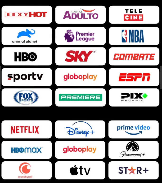 Conteúdo em Full HD e 4K com imagens nítidas e vibrantes.